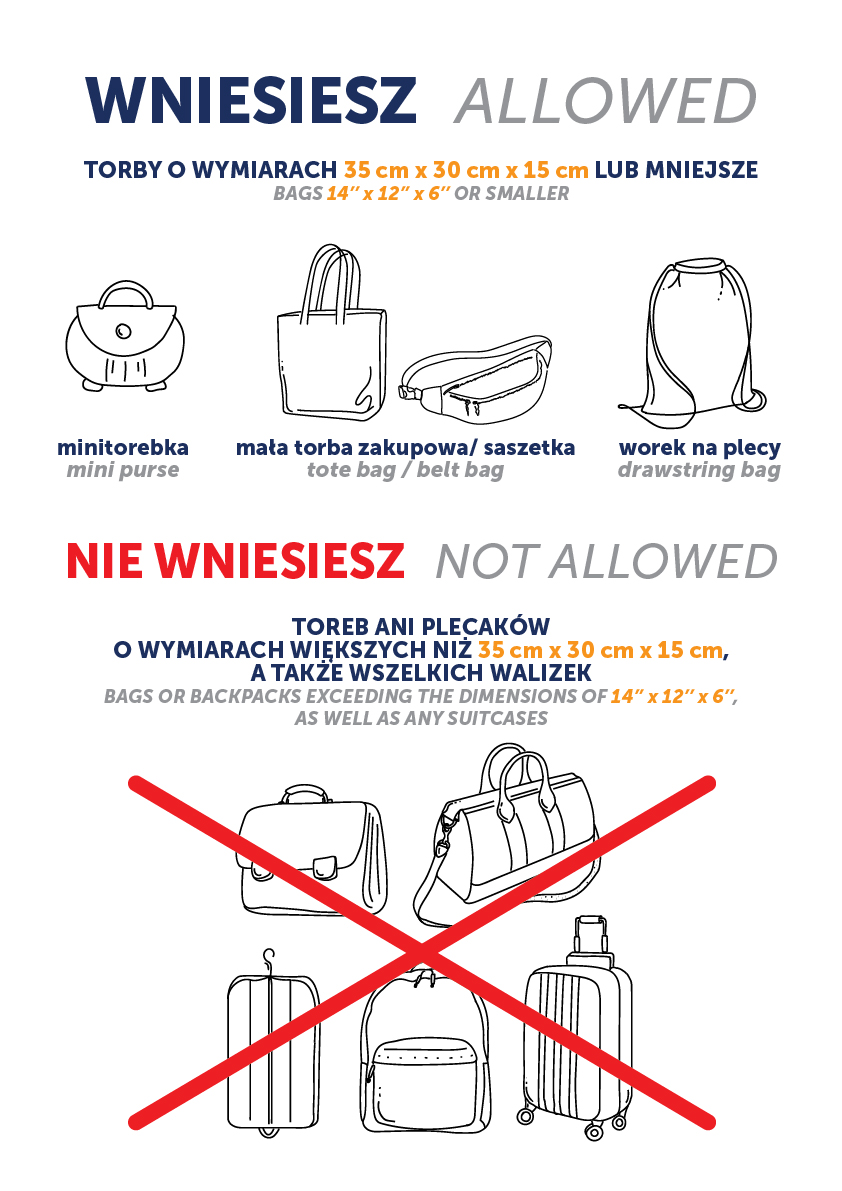 The organizer has provided a deposit located near Entrance 3, charged PLN 40 per item, and open from 1:00 PM to 11:30 PM. We recommend going to the deposit before queuing to enter the venue. Only items listed in the regulations as prohibited will be accepted at the deposit.